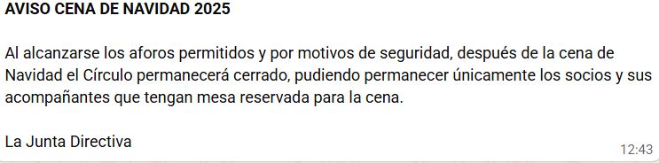 | 25/12/2025 | 12:00 | AVISO CENA NAVIDAD |  |